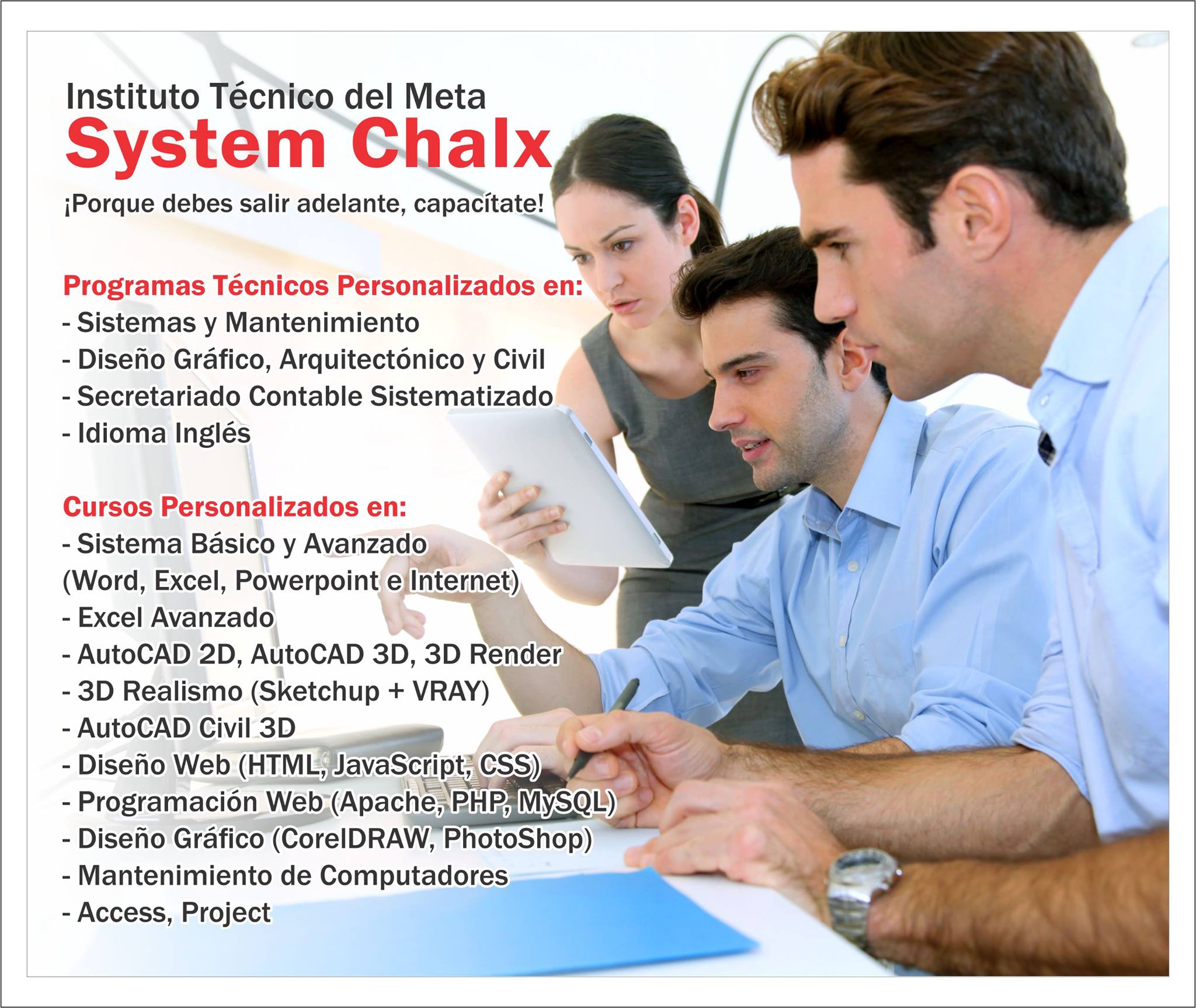 Estudie AutoCAD, de la manera mas fácil y sencilla, la forma de enseñanza del Instituto System Chalx es 100% personalizada, computador por alumno, horarios flexibles, de lunes a viernes o los sabados, facilidades de pago, excelentes instalaciones, cursos rápidos, cortos y carreras técnicas.